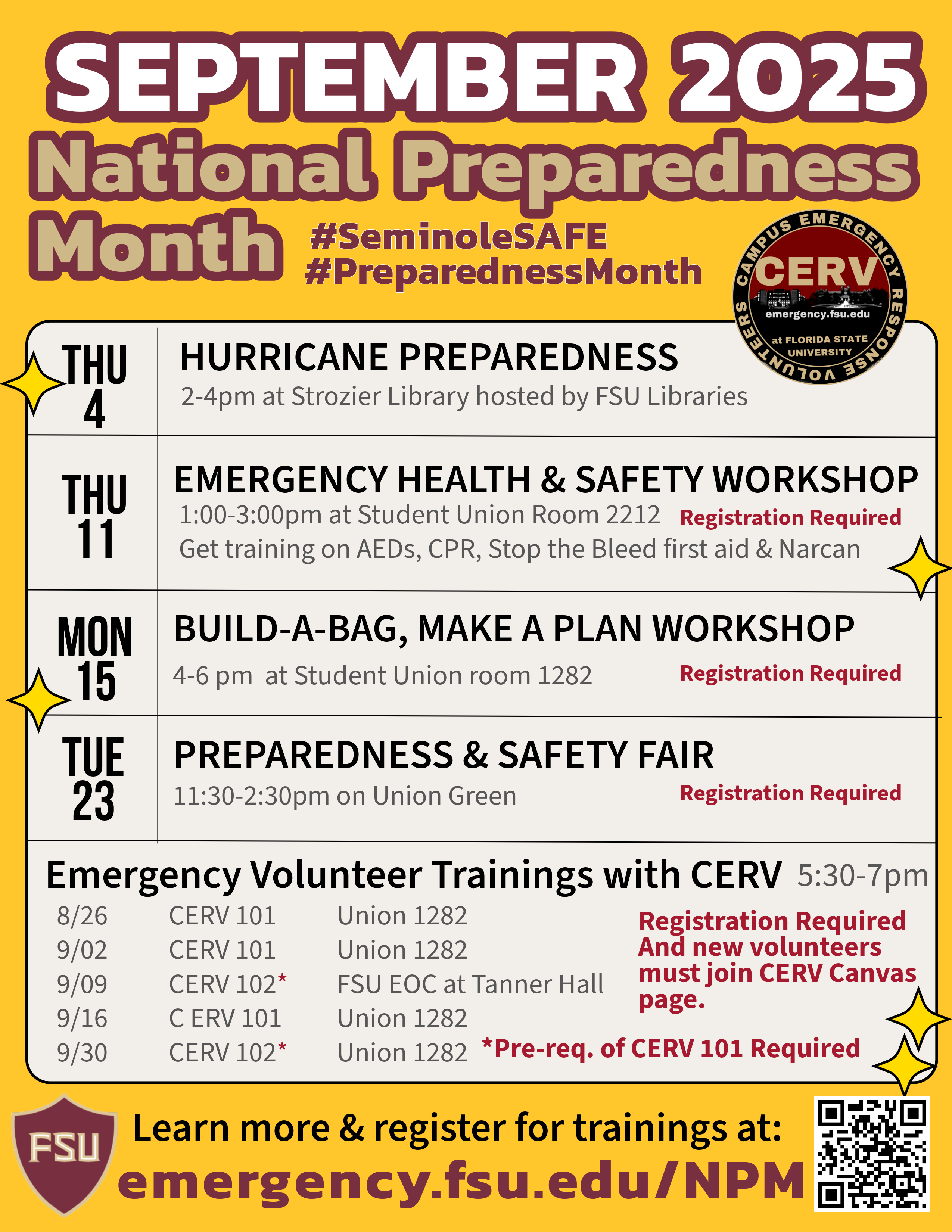 Join FSU Emergency Management, CERV, and other campus partners in September